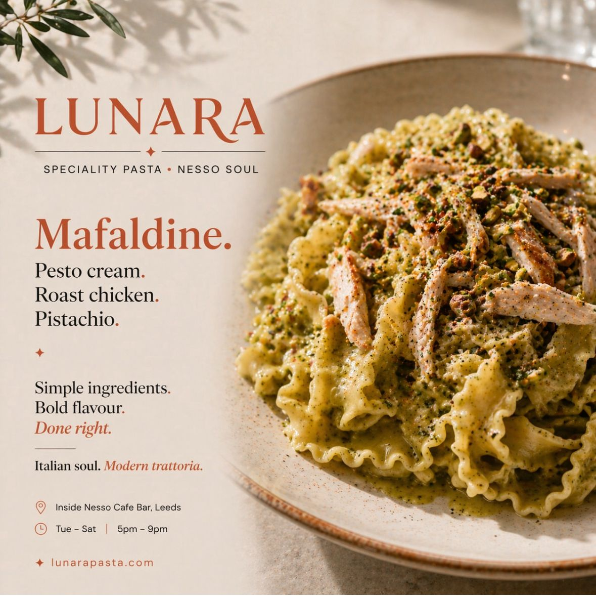 LUNARA Pasta is a modern Italian pasta bar built around simplicity, bold flavour, operational efficiency and a premium customer experience.